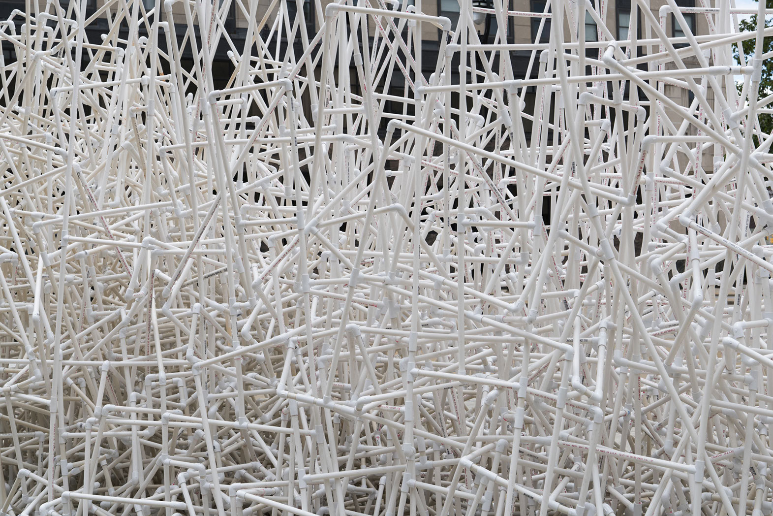 Conceived during a residency in Beijing, this site-responsive sculpture employs PVC tubes and connectors to reinterpret the narrative structure of a Chinese fable, exploring the transformation of cultural and generational values. Through its modular, industrial materials, the work reflects on the fragility and adaptability of tradition within rapidly shifting social and historical contexts. It has since been acquired by the Museum of Wisconsin Art in West Bend, Wisconsin.